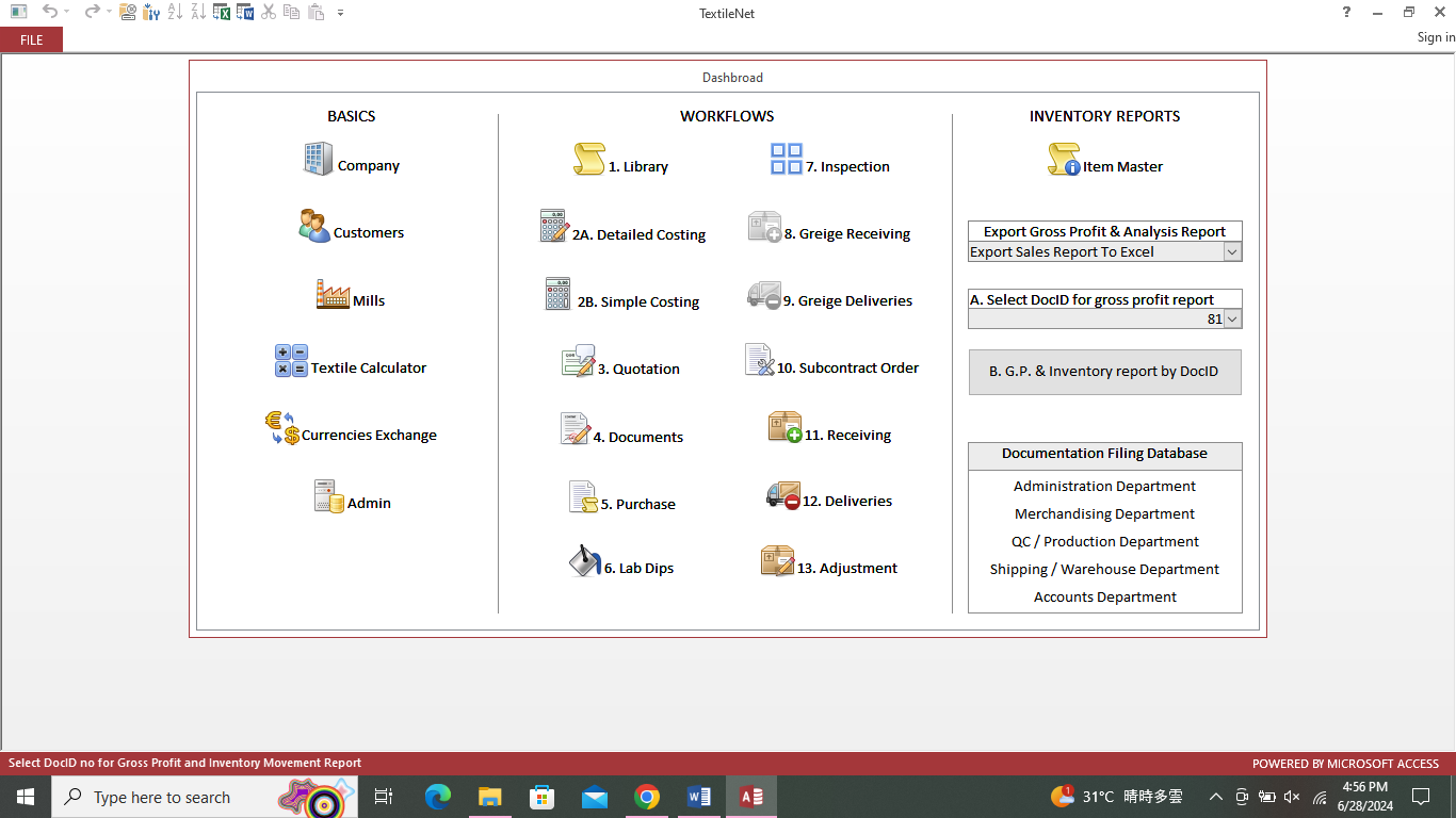 TextileNet manages fabric sourcing, development, target cost, quotation, sales, production, subcontract, quality & inventory of textile Co. Designed for textiles industry like yarn, fabric, home textile, lining whatever woven, non-woven or knitted textiles Co. Use it to track their sales, purchasing, inventory, costing and quality comparison...... Learn more
